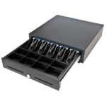C410-4B8C Tiroir-caisse Classique Détails et accessoires disponibles Spécifications Standard 16'' Ouverture automatique (RJ11) ou manuelle (à clé) Format $CAD 4x8 Roulettes en plastique sur rail Boitier noir, en métal Fiche technique téléchargement